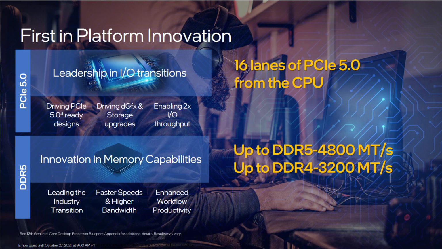 Будущее наступило. Индустрия окончательно переходит на технологии, которые будут являться ключевыми в домашнем сегменте в ближайшие годы. Самым существенным нововведением стал переход на оперативную память DDR5, которая повышает планку максимальной частоты и пропускной способности, а также интерфейс подключения PCIe 5.0. Процессоры Intel (Alder Lake) - это новый виток эволюции ускорителей для домашнего и корпоративного использования. В рамках мероприятия Innovation состоялась презентация 12-го поколения процессоров, суммарное количество которых достигнет 60, а основные отличия будут заключаться в частотах и количестве физических ядер.